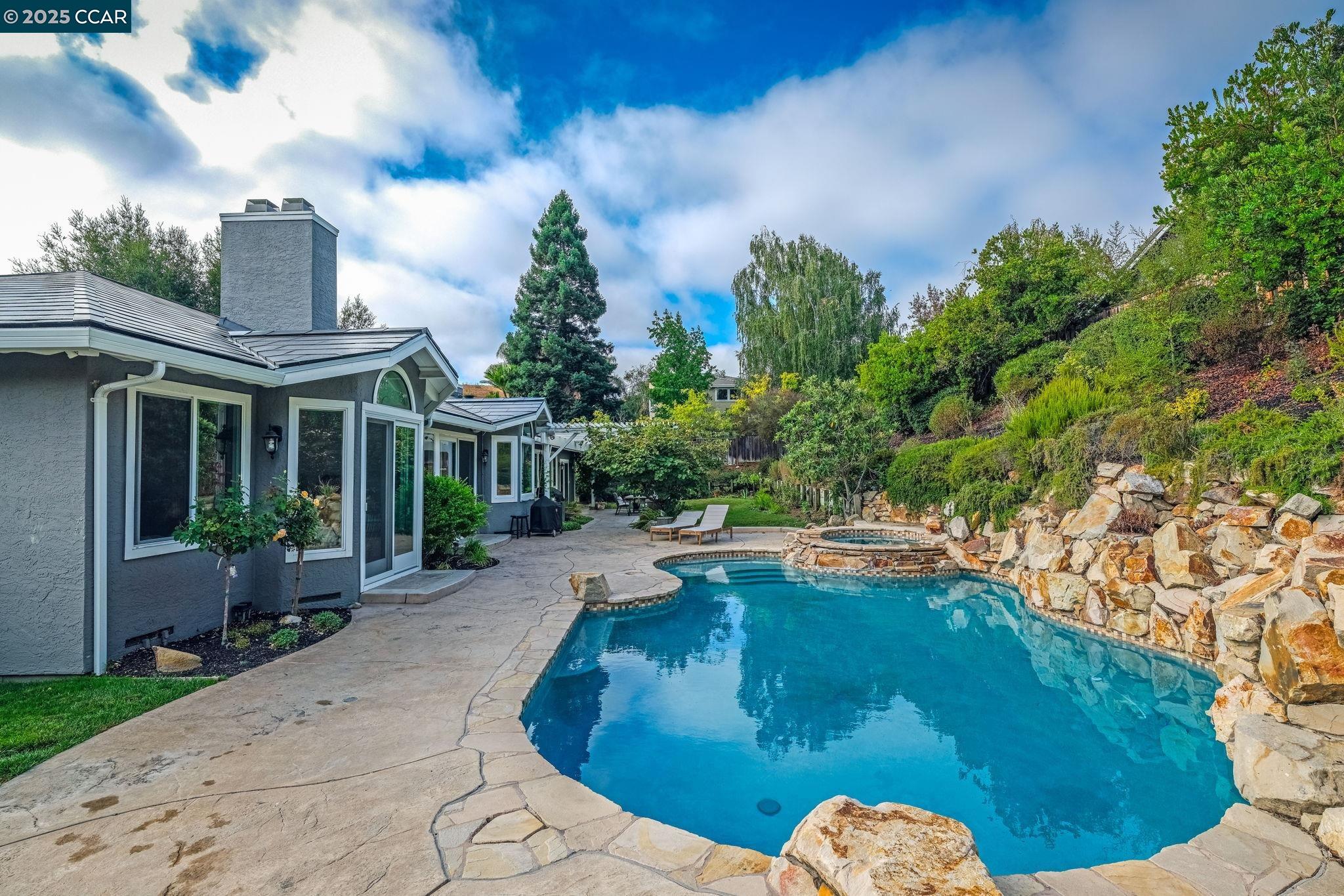 This beautifully updated single-story gem in the highly sought-after Wood Ranch is a true masterpiece! Nestled on a serene cul-de-sac, the home showcases custom touches throughout and a breathtaking Peter Koenig-designed yard. The gourmet kitchen is a chef's dream, featuring a Wolf range, Miele oven, honed granite, butcher block counters, custom cabinetry, and an expansive island with bar seating. Boasting 4 bedrooms + office, 2.5 bathrooms, with a private primary suite with cozy fireplace, vaulted ceilings, a luxurious bath, and direct backyard access. The backyard oasis stuns with a freeform Riviera Pools saline pool, spa, and rock waterfall. Upgraded with a $176K Tesla Solar Roof and two energy packs, plus a $35K fully connected home system with 1GB ethernet, 5-zone Sonos, and Savant control for seamless automation. From smart thermostats to a near-commercial-grade network, this home is the perfect blend of luxury, tech, and tranquility--a must-see haven!