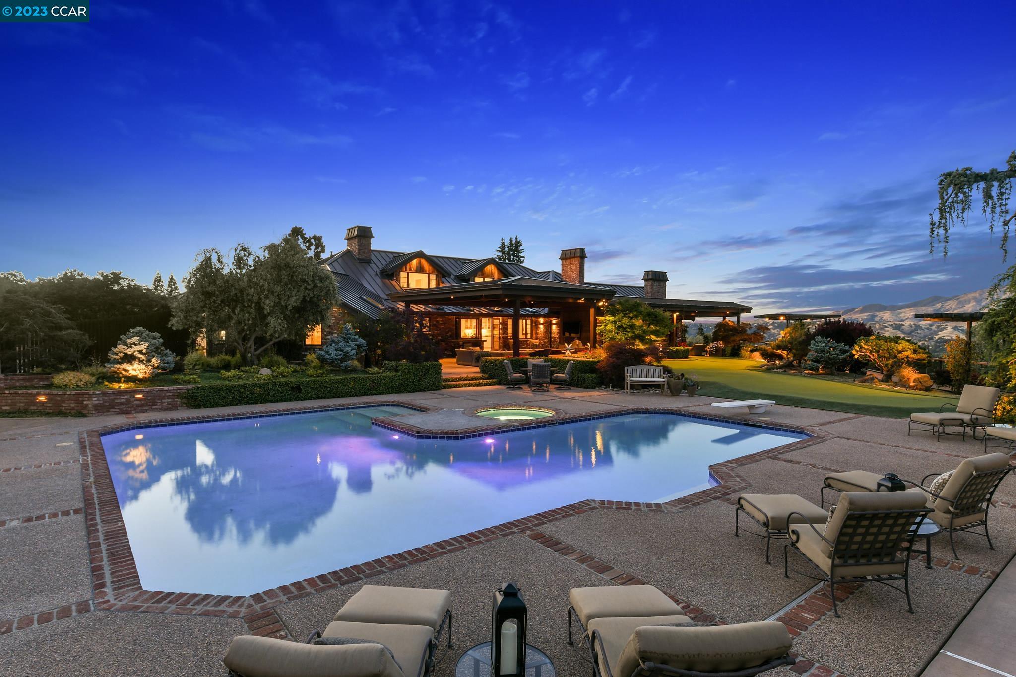 Escape to a world of rustic elegance, breathtaking views, & an unparalleled sense of peace & privacy in this 4-bed, 4.5-bath custom home. Over 6,400 sq. ft. of living space, including a guest cottage & a magnificent open-concept design, this residence is the epitome of comfort & style. Main home is approx. 5500 sq. ft. & ADU just under 1000 sq. ft. Picturesque barn that could be an additional ADU or car collectors dream garage. Indulge in stunning panoramic views of Mt. Diablo & relax in the lush serenity of fully-gated surroundings. Step inside to find a home that feels like a single-story dream, w/ formal living & dining rooms, a library, & a great room that boasts oversized windows to take in the breathtaking views. Entertain guests in the fully-covered outdoor living area, complete w/ a sparkling pool, spa, tennis/basketball court, tennis pavilion, soccer field/driving range & putting green- all of which add to the endless outdoor amenities. Over $5mm in upgrades to exterior infrastructure, highest quality landscaping, fully drivable & golf cart accessible. Elevate your California lifestyle with this sports lover's paradise, conveniently located just 1.5 miles from the vibrant downtown Danville & its abundance of dining, shopping trails, and award-winning schools.